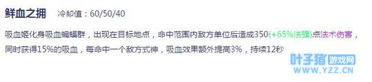 装备方面依然分为半肉型出装及全肉型出装两种。这里小编重点介绍一下吸血姬的核心装备“山吹花尽”。此装备性能方面是增加10%的冷却缩减及增加法术强度。较为和吸血姬技能契合。并且被动效果:能够根据敌方的最大生命值造成持续性伤害,简直就是为吸血姬量身定做的一件装备。 决战平安京吸血姬技能加点推荐:技能加点方面,主流加点分成两种:1.若是前期控线则主升血袭,副升血翼。2.如果线上进行频繁消耗可主升血翼,副升血袭。 小编总结:做为消耗型上单,吸血姬由于没有爆发能力,不能以单杀为目标,要以控制兵线,控制血量和等级,对敌方进行消耗,对己方进行频繁支援为主。,而吸血姬大招鲜血之拥不能作为一个收割技能使用,只能利用技能带来的高额吸血效果,在团战中吸收伤害恢复生命值,所以在使用鲜血之拥前要保持血量,不能血量过低。 如果喜欢本文,请为我点赞加关注。每日更新。您的关注是我每日不拖更的动力,谢谢支持! |