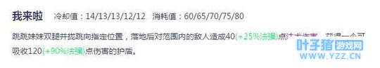 ¾öսƽ°²¾©ÌøÌøÃÃÃôóÕУºÌøÌøÃÃÃõĴóÕоÍÊǰѹ·ÈÓ³öÈ¥£¬ÒÔ²úÉúÉ˺¦¡£´Ë¼¼Äܳ¬¹ý·¶Î§¿ÉÒÔ±»µÐ·½Ê½ÉñÕõÍÑ¡£×î¶àÄÜÔì³ÉÎå´ÎÉ˺¦¡£²»Äܵþ¼Ó·ûÖäЧ¹û¡£´Ë¼¼ÄÜÒªµãÔÚÓÚ£º1¡¢Îå¶ÎÉ˺¦ÄÜÈ«¶î´¥·¢·¨ÊõÎüѪЧ¹û¡£2¡¢´óÕÐÔÚÊͷŹý³ÌÖУ¬Èç¹ûÄ¿±ê¹ý½ü»áÔì³ÉÐ¡ÌøÆµ·±´¥·¢µÄÇé¿ö£¬´Ó¶øÎÞ·¨ÏÎ½ÓÆÕ¹¥¼°Ö÷¶¯¼¼ÄÜ¡£3¡¢ÖÐÔ¶¾àÀëÊÍ·Å´óÕÐʱ£¬ÔÚÐ¡Ìø¼ä¸ôʱ¼ä¿ÉÒÔÊÍ·ÅÆÕ¹¥»òÕß¶þ¼¼ÄÜ¡£4¡¢´óÕÐÊÍ·ÅÆÚ¼ä£¬²»»áÒòΪĿ±êµÄÊÓÒ°¶ªÊ§¶øÖжÏÊÍ·Å£¬Ö»»áÓÉÓÚÄ¿±ê¾àÀë¹ýÔ¶¶øÖжÏÊÍ·Å£¬´óÕпªÆôºó£¬×ÔÉíÎÞ·¨ÖжϴóÕС£