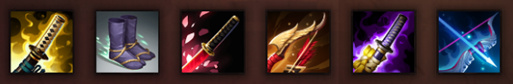 装备推荐一 天绝·大典太——叶隐具足/建御战靴——凶刀·鬼丸——鸣动长风——灭刀·数珠丸——千鸟双月 优点: 主要用于应对敌方突脸刺客类英雄,保证自身安全。