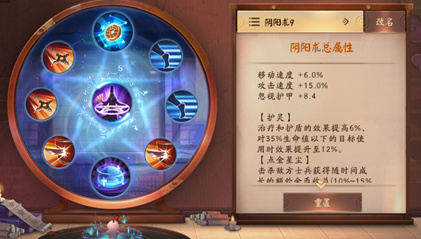 阴阳术搭配—攻速流 中部 言灵·星 :增加输出能力 上部点 金星尘 :增加装备成型速度 下部 护灵 :增加生存能力 左上部 攻速 :增加输出能力 右上部 移速 :增加移动风筝能力 下侧位 物穿 :增加输出能力