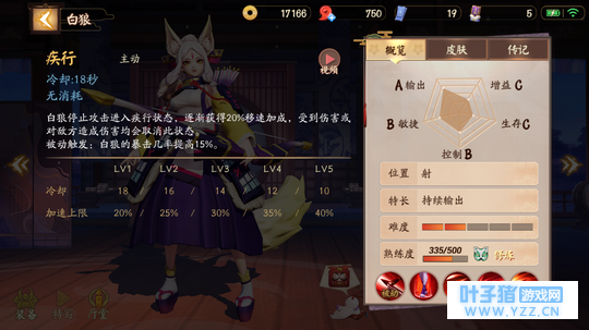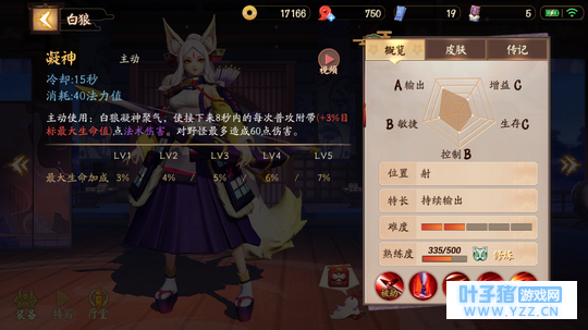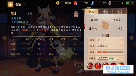 本期式神:白狼(我的队友,在哪里) 式神定位: 射手 后排物理输出 式神特性: 身娇体柔要人疼,最容易上手的发育型式神。 技能解读: