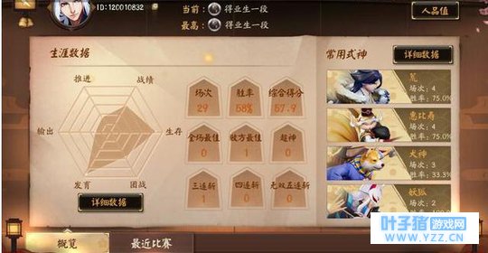 点击左上角的头像就可以看大数据信息以及最近比赛的详细信息,人品值就是相应的信用积分,而当人品值小于九十分时,将取消参与资质赛的资格!