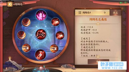 【鬼使黑阴阳术】 秘术豹袭+点金星尘+破灭+2物攻+2物穿+2吸血 鬼使黑的阴阳术选择就比较多了。点金星尘可以看个人喜好调整成唐伞守护或雀羽之印,而吸血也可以根据个人选择调整成移速。秘术豹袭和破灭是不可替换的,破灭可以提高鬼使黑的收割能力,秘术豹袭则可以提高鬼使黑的爆发,非常重要。