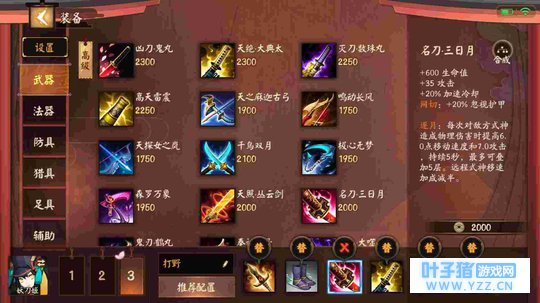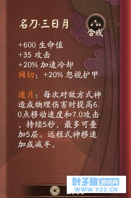 第二件做三日月。注意。这个第二件是妖刀姬的核心出装。为什么这么说。首先我们来看看这个装备的属性600的生命35的攻击20减CD 20穿甲。很多玩家玩妖刀姬不喜欢出这个装备的原因是攻击加的太少了。觉得妖刀姬应该都出大额攻击加成的装备。如果这么想。那你就错了。首先。这个装备可以在前中期给妖刀姬带来一个撑血的作用。不至于前期一波巷战或者小团战导致被一个硬控直接秒掉。其次。这个装备有一个被动技能叫逐月,在对敌方式神造成物理伤害时可以增加6点移动速度和7点物理攻击。持续5秒。叠加5层。也就是说。在叠满时可以获得30移动速度和35物理攻击的加成。因为妖刀姬开启噬魔之后。三刀是秒出的。并且妖刀姬一般是在摸到人一刀之后才开噬魔这个技能(可以重置普攻。而且这样可以让输出效率达到最大)所以这个五层是很容易叠满的。我们再回过头来看看这件装备的属性。除了600生命20CD 20穿甲。现在再加上70点攻击力和30的移动速度。如果这样你们还觉得不够超值。你再看看价格这个装备只要2000块钱。比大家喜欢出的鬼丸。大典太这类输出装都是要便宜一个半人头的。所以这件装备。我把他定为妖刀姬前中期打野的核心装备。