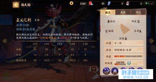 一技能是鸦天狗主要的抗压技能可以更好的赖线和抗伤害,并减少自己被射手和战士的输出