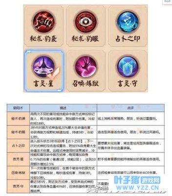 中间的空位也有六种可以选择,分别是:秘术·豹袭,秘术·豹眼,占卜之印,言灵·星,召唤·炼狱,言灵·守。这些可以为式神技提供强大的作战效果。