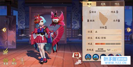 金鱼姬大厅展示 天下第一可爱,全新式神金鱼姬即将登场 一袭朱红罗衫覆于身上,手中纨扇如蝶飞舞,头顶上的鬼面也成了金鱼姬可爱的装饰。这位有着远大梦想的式神,将会于本周现身百鬼弈玩法中,各位阴阳师大人们有机会随机分配到这位全新的式神。在平安京的战场中,金鱼姬的定位为“巫”,拥有强大的对线能力,以及优秀的控制能力,推荐走中路。