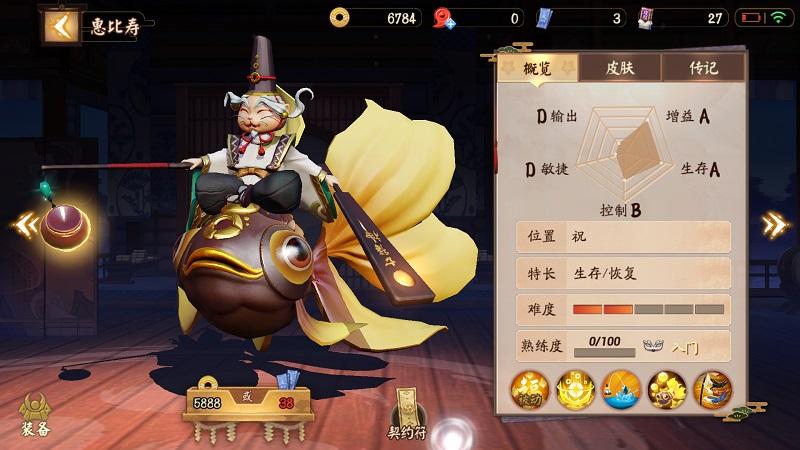 惠比寿是一个辅助性质比较强的一个式神,其控制技能和增幅技能是式神本身的一大优势。惠比寿是一个不担心蓝条的式神,其天生被动让其越是蓝少时,回蓝速度越快。但是惠比寿在对线上是很难与敌方式神打消耗,一个“姜太公”技能的式神,那不就是一个文官嘛!哪来的输出。虽然其三技能有一定的伤害,但是由于技能范围很小,很难攻击到敌方式神。所以惠比寿的主要能力还是在开启先手上,二技能可以开启先手,然后接三技能眩晕敌人。作为辅助的“姜太公”,一技能可以给队友回血,辅佐射手,给其提供续航能力。大招就是用来保护射手或者团战是增幅队友,必要时可以用来保护肉。惠比寿的技能操作很简单,只是在开启先手时,要对二技能的释放有一定的预判。毕竟这钓式神不是钓鱼,他不会愿者上钩,需要我们去预判其走位。 当然相信以后还会有更得强势的辅助式神出现在《决战!平安京》里,请阴阳师们尽请期待。 |