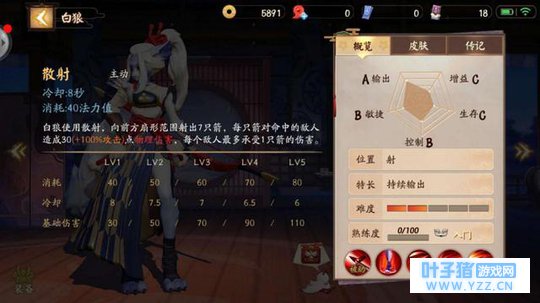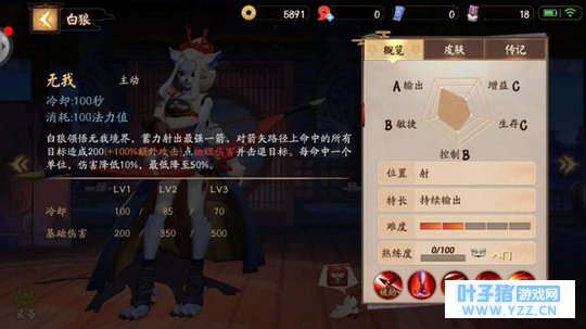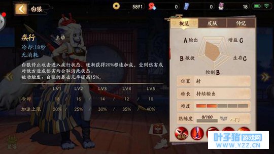 技能介绍 白狼的被动技能叫做文射,天生被动,随着等级的提升,每级会增加7.0码。可以说是非常实用了。