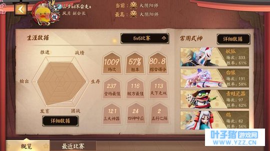 一看就知道两位玩家都是偏爱射手的玩家,两个通道中人的大阴阳师玩家,从总式神的胜率和两位玩家的总战绩胜率评分来看,实力相差不大,赛季刚更新后,同是为数不多的大阴阳师的两人,在这场比赛里的评分发挥都是大相一致的,实在是缘分。 总这样的一场比赛,相信大家已经不难看出《决战!平安京》在资质赛上的匹配机制在更新后变得尤为的公平和平衡了! |