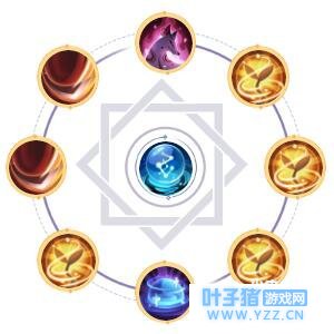 进入战斗状态3秒后获得[占卜之印],使下一次对式神的攻击造成重击,附加5%自身最大生命值法术伤害。远程式神使用时效果减半,冷却时间4秒。