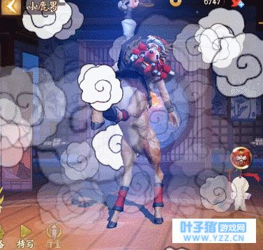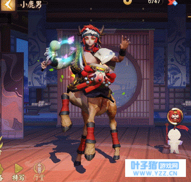 四技能 小鹿男向指定方向发起冲锋,对途中撞到的敌人造成物理伤害并将其 向两侧击飞 。最后来看一下式神互动动作(顺便欣赏鹿……屁股)。