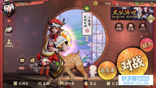 他将活用自己善于奔跑的特性,在战场中越战越勇。他不仅可以召唤护盾为自己抵挡伤害,还能发动怒气对敌人造成持续打击。危急时刻,他还能发动迅猛的冲锋奔向敌人,将敌人的阵型彻底打乱! 鹿鸣之夏,全新式神小鹿男今日登场 白色的护额穿过如火的红发,脸颊上红色的纹路为他清秀的面容添了一分野性。他手持鼓杵,腰挂锣鼓,时刻保持机警。这位孤独而又坚强的少年妖怪——小鹿男,本周正式降临平安京战场,各位阴阳师大人今日可以在比赛中使用这位全新的式神。小鹿男的定位为“侍”,拥有强大的机动性与持续输出能力,推荐走上路。