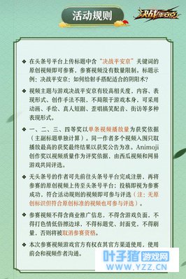 投稿时间为5月29日开始,截止至6月30日,在这期间,阴阳师大人们可以按照下方的活动规则前往头条号平台上传自己的平安京原创视频,最终的获奖结果会在7月6日于西瓜游戏头条号正式公布。