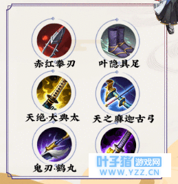 对面肉盾较多。 方案二 赤红拳刃(小吸血)、叶隐(鞋子)、大典太(被动)、鬼丸(大吸血 )、鹤丸(穿透)、天弓(天探女之岚)