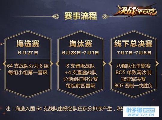 层层角逐,2018电竞赛事轮番启动 本次赛事的选拔分为三个阶段。6月27日将进行海选赛,64支战队将分为8组,通过单败淘汰赛角逐出组内第一名,晋级淘汰赛。6月28日-7月1日,受邀前来的“大阴阳师邀请赛”四强队伍,将与成功晋级的八支玩家队伍展开激烈的淘汰赛,12只战队将分为两组,进行BO3组内单循环积分赛。积分规则如下:局分2:0,则胜队积3分,负队积0分;局分2:1,则胜队积2分,负队积1分。最终根据总积分排名,每组前四名晋级。 最后,成功突围的8支战队将于7月7日-7月8日进行线下总决赛,进行BO5单败淘汰制角逐,冠亚军决赛将进行BO7大战。