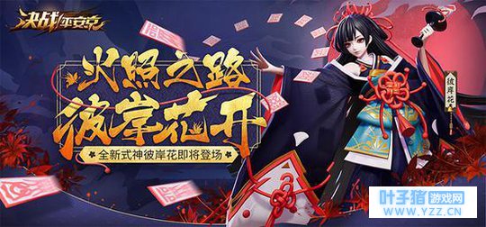 逢魔之时 在“逢魔之时”玩法中,式神的技能消耗、技能冷却时间都将得到降低和缩短。开局5级的初始等级与1000金币的初始金币还将帮助大人们快速出装并尽早投入团战。此外,式神的移速也将得到提高,远程攻击式神还将获得额外攻速与暴击率,击杀河道达摩更可以拾取特殊神符从而获得增益效果。 逢魔之时降临,一场畅爽至极的对决即将展开,各位阴阳师大人们,准备好携手式神,前往逢魔之时大战敌手,享受畅快无比的全新对战了吗? 大妖降世 全新式神彼岸花正式登场 火照之路,彼岸花开。少女有着让人一见难忘的美丽容貌,她穿着一身黛色和服,出现在了三途川边的彼岸花海。头戴绯红花蕊,腰系金纹青结,柔顺的黑发如瀑布般流下。今日,《决战!平安京》全新式神彼岸花也将华丽登场,这位散发着妖异魅力的少女定位为“巫”,有着出色的续航能力和输出能力,她能召唤血色的曼珠沙华,将敌人化作花泥消逝,快来与她一起并肩作战吧!