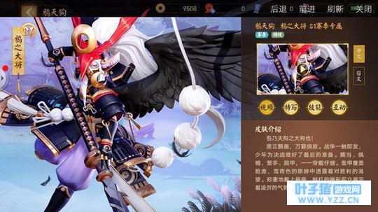 鸦天狗:鸦之大将 平安京S1赛季专属皮肤,鸦天狗因为带面具的锅在这两款游戏中都不讨喜,实际人家还是很帅的一个小哥的,这款皮肤意外的拉高了鸦天狗的形象和颜值,比阴阳师的觉醒前后形象都要好太多了。