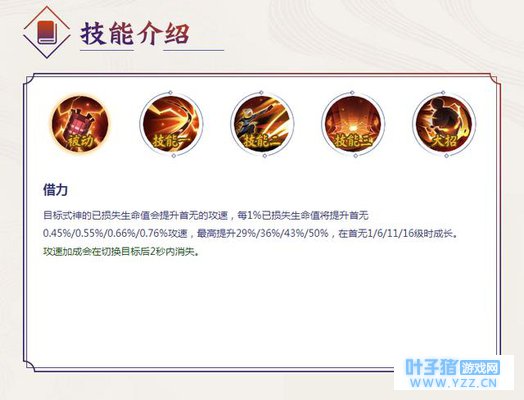 我们可以看到官方给出的数据是输出、敏捷都为A,这是一个标准型AD的数据,特长的关键词是爆发/突进,这就必须得从首无的被动和大招开始说起。