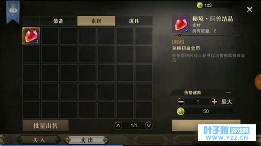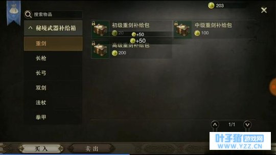 先说第一种,我们可以在营地中的秘境武器商人消耗秘境币来购买所需的武器,秘境币在秘境中通过打怪、采集、完成任务,也可以通过卖掉不用的装备(不过买装备获得的钱很少,英雌不推荐大家在这里浪费时间)和出售BOSS掉落的秘境·巨兽结晶获得,金币的获取数量随着关卡进度的提高而提高。高级武器箱子价格为200秘境币,高级防具箱子价格为100秘境币,戒指项链箱子为50秘境币。小编推荐大家的购买顺序是优先购买武器,其次是饰品,最后才是套装。