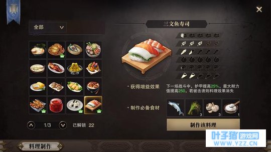 三文鱼寿司和鲍鱼捞饭,两个料理增益buff都很强大。