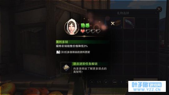 封面是艾薇儿的250好感度羁绊任务,由于bug现在这个任务没有显示所以无法完成。只有主餐和甜品的羁绊任务及效果,这里说一下,小编到目前为止艾薇儿只吃甜品料理加的比较多,C级甜品料理加五点好感度,一天十次五天就能送满250好感度。当然还可以去商场购买抹茶松露布朗尼,EX级甜品料理一次加10,也就是四天就能够送满。