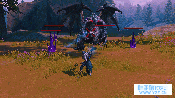 【技能介绍】 黑曜龙的技能分为两种形式: 一种是单纯利用身体部位进行攻击的动作系,还好他的身材比较富态,这个系别的技能还比较容易被观测出来呢。 例如,当黑曜龙将翅膀收拢在身上,突然倒向一侧并且翻滚半周,会倒地碾压侧面的敌人,然后“笨重”站起。这个技能的攻击方式有限,要注意的就是躲开它的技能范围。而当黑曜龙展开翅膀,其会对前方进行一段距离的冲刺,但是由于翅膀展开,所以范围较大,不过同样的速度也较慢。当黑曜龙尾巴向一侧略微抬起,会对后方敌人用长尾进行一次横扫,横扫结束后短暂硬直。虽然萌萌哒,但是大家别放松警惕,这么胖砸下来可是很疼的。