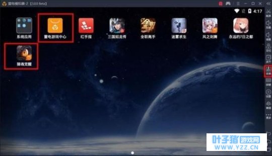二、打开雷电安卓模拟器,在雷电游戏中心搜索“猎魂觉醒”进行下载,或通过模拟器右侧栏目里面的APK安装功能打开下载到电脑上的游戏安装包。