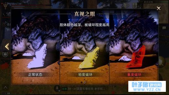 猎魂上也和怪物猎人类似,有破头,断尾等一说,只要连续攻击怪物的头,尾以及四肢就会造成怪物的外壳破裂以及断尾破头效果,当出现效果之后用真实视觉观察就会发现破坏了多少,再次破坏将会对猎魂怪物造成大量伤害,还可以获得额外素材~素材可是武器和防具锻造的需求~所以要尽可能地多破坏,这样会获得更多奖励。