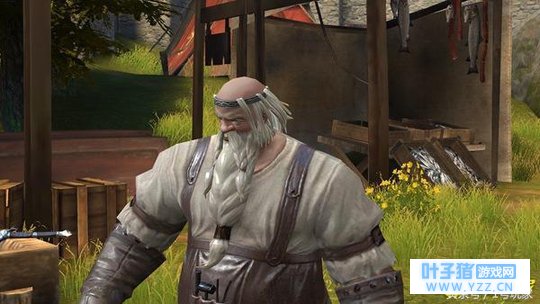 把材料交给老爷子就能获得装备了,这个老爷子不得了啊。常年沉迷打铁锻造装备, 头发都没了 ,只能靠找个铁环挂几根在头上。