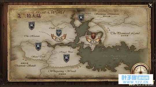 然后你就会看到这张地图,这个“艾兰特大陆”有很多个主城。这一点设计又让游戏强行回到了MMOPRG的领域。