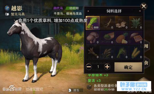 讲到这里,就要提到《猎魂觉醒》中马匹的基础属性了。 马匹血统为了便于区分,《猎魂觉醒》中的马匹被划分为了高原、平原、极地三种血统,每种血统马匹的模样是有一些不同的,至于那种血统的马最好看就只能见仁见智了。 高原马主要为红色,平原马主要为黑色,而极地马主要为白色。三种马匹的混血种会继承相应血统的特点,模样也会各有不同。 马匹成熟期每一匹马从出生开始到完全成年被划分为幼龄期-成长期-青年期-壮年期-成熟期五个阶段,随着成熟期的提升,马匹的基础属性也会随之提升。 玩家可以通过喂食提升马匹的成熟度,同时马匹的成熟度会随着时间推移自动增加。(只有青年期以上的马匹才可以进行繁育。)喂食马匹最好是草料,草料可以在战斗副本采集获得,当然还有高级草料,氪金玩家可以直接商城购买。
