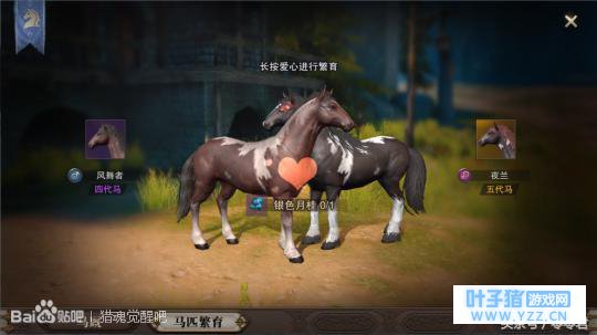 除此之外,不同品种的马匹在酒店委托的任务中也可以提供不同的功能(缩短时间或者获得更多的素材)。 《猎魂觉醒》的马匹分为6代,从六代到一代品级依次递减。获得一至三代马匹最主要的途径是通过驯马副本获得。 进去驯马副本需要花费龙延香,龙延香也是分为小、中、大三个品级的。理论上,越高级的龙延香获得高级马的几率越大(你没看错,就是理论上。网易爸爸的概率学一定是体育老师教的)。 进入驯马副本之后,会在随机的某一张图中刷出一匹野生马匹。 进入这张图之后,找到野生马匹。然后悄悄靠近、打枪的不要,等待机会翻身而上,与野马“啪、啪、啪”将其收服(具体的过程十分不可描述,想“钻研”的大佬可以看小编的头条视频)。 3代以上的马匹是没有办法通过抓马获得的。唯一的获得手段只有通过马匹的繁衍。理论上只有3代马可以生出4代马,并且以此类推。不过个别“能让一代马生六代的”欧皇选手请绕路。我等木乃伊级非酋每次都是3代生1代。