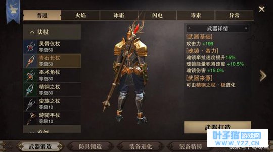 再根据使用的武器属性和发展的方向不同分为元素流法师和暴击流法师。 不过,在这主流的两种法师之外,还有第三种套路的法师就是物理攻击流法师。 今天小编将为各位大佬梳理一下物攻流法师的玩法攻略。本篇攻略将包括装备选择、猎魂、技能等等在内,如有不妥之处请各位大佬在评论区指出,共同进步。 首先要提到的是在《猎魂觉醒》这款游戏中与其他游戏不同的地方。在这款游戏里,普通的物理攻击实质上也是一种属性。BOSS的属性弱点中除了火、冰、闪电、毒之外还有一种就是物理攻击。 比如说,把零零君虐的欲仙欲死的BOSS奇美拉的元素弱点就是物理攻击(小编的大号是冰法呀,有兴趣的大佬可以观看小编被蹂躏的视频)。 选择暴击流的法师实际上就是在普通物理攻击的基础上提高暴击几率,目的是提高输出能力。 不过,事实上所有加暴击的装备所增加的物理攻击力都会减少。所以,只要合理的选择套装和猎魂,纯攻击流的法师一点也不弱。 武器既然是走纯攻击的流派,武器自然选择攻击法杖。