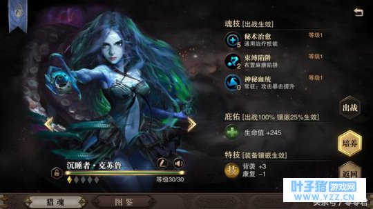 克苏鲁 除了两个主流猎魂之外,秘术系的索托斯也可以使用,免伤法阵可以在关键时刻救命,能量集中则可以提高魂链的积攒速度,配合超高的攻击力,一套技能就是一根魂链。