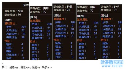 由于重创成就好像是+2重创,所以在暴击流方面还需要仔细研究。 其次,说说现在的装备,精准+10之类的戒指或者马可遇不可求。现在猎运常在区流通在市面上的多为精准+2娴熟+2的戒指,咬咬牙存点钱还是可以买的,而猎魂镶嵌是长远的路,并且刚刚结束的活动,刷过猎魂的基本都有一点基础,所以混装就尽量以此为基础,尽量贴近平民。 三,苍龙套混搭分析 混搭选择恺骨的理由: 苍龙的最大负面效果是残忍,能在装备上提供残忍的只有两个——蛤套和恺骨套。而苍龙带着精准,固混搭选择恺骨,如果其他人有自己的想法当然更好 那么先从混搭一件开始做起,首先是换将苍龙的头替换成恺骨的头,下面是属性