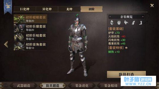 螳螂的属性还是很有优势的,也是所有装备里最早的一套可以从头用到尾的装备。配合两种不同的异常武器,和技能缩短时间,一套优质的异常流就此成型。这是流派选择的相关内容我在中期分享。再说说缺点。防御力实在不容乐观,无论是属性防御还是元素防御。总体而言还有提升空间。 无论是后来混搭还是只有前中期使用,这些装备不应该浪费。 前期套装就是这些,除了皮脆的螳螂套装勉强堪用以外,其他套装都难堪大任。在此,我建议,前期所有人都打造猩猩,用最简单的暴击武器。先不要考虑属性问题,也不要精炼。直到我们进入四十级的大门,此前将精力着重于熟悉系统,提升副职业,以及增加好感释放技能。 |