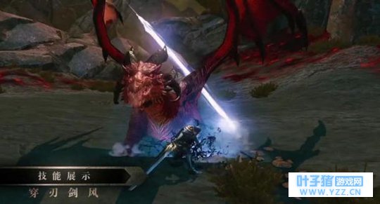 第二个技能是穿刃剑风,是挥舞重剑形成两道剑气来造成伤害。该技能是重剑唯一的远程输出手段,可在玩家远离怪物的时候进行有效输出。但长时间的技能硬直也更容易收到怪物的突进攻击。