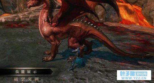 重剑的第一个技能是破空突刺,将重剑向前投掷后瞬步接住并进行一次上挑攻击。该技能可以有效的拉近与怪物的距离,使接下来的攻击可以更准确的命中目标。