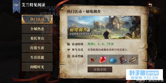 这里要特殊说明的是,【秘境调查】不是每天都能参加的,只能在周2、4、6、7参加,所以大家要注意安排好时间。