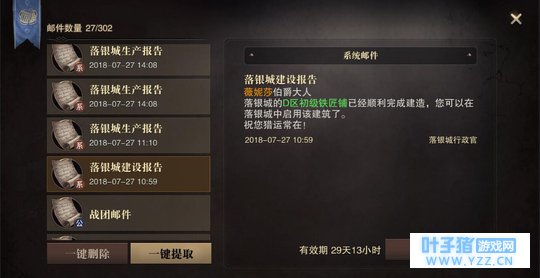 选完数目后点开始生产,就正式进入生产阶段了。生产和建筑一样,不用刻意记时间,到时间会有邮件提醒你去收取物资。收取方法就是去对应建筑点收取,没什么好说的。