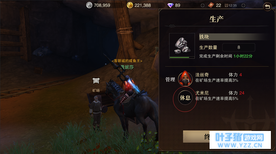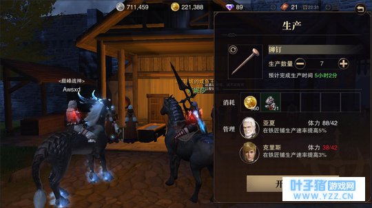 生产界面 点击上面的+号选择生产物品,然后点下面的+选择合适的管理员(优先选有加成的),2个管理员生产速度会比1个快一倍,但是体力也是双份,自己根据自己的游戏时长决定怎么分配管理员(伐木推荐长期2人,因为无论建筑还是生产都要木头,供不应求)。选好管理员再如下图选择生产数量,体力红色表示管理员体力不足以生产如此数量,需要减少数目。如果有管理员连1个材料都不够体力生产了,那就需要让他去休息,在生产界面,点击该管理员头像,会出现休息字样,再点击休息,就可以让他去放假了哦。
