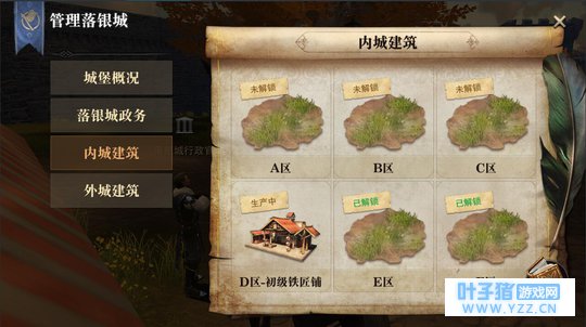 农场详图 注意内城需要去已解锁的点才能建造单位,已解锁点可以如下图在内城建筑选项里看到。