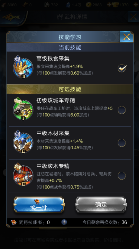 导读:在《乱世王者》的世界中,程昱只是一个蓝色品质的武将,但是其作用却也不小,只要合理的搭配领悟技能,放在合适的位置就能发挥出比其它紫将、橙将更强的效果。接下来,就让小编带各位主公全方位的了解一下游戏中的程昱。 【武将介绍】 程昱 武将简介 详细属性数值(初始) 性别 男性 战争 44 类型 发展 发展 143 品级 蓝色 辅助 41 武将生平:程昱,字仲德,兖州东郡东阿人,三国时魏国将领和政治家。原名程立,因梦中于泰山捧日,被曹操更名程昱。善于审视及分析形势,而且很有谋略,可是他的性格却相当急躁,容易与人结怨。 【武将获取方式】 1、武将招募:普通招募获取,有3.45%几率抽取到蓝色武将;高级招募获取,有4.43%几率抽取到蓝色武将。如已有该武将,将分解为对应将魂,用于武将的升星。 2、将魂兑换:将魂可通过兑换,购买并数以及势力据点招募获得,10个程昱将魂可以兑换得到紫色武将程昱。 【武将固有技能】 中级采集:采集速度提高(每100点发展获得0.75%加成) 技能解析:采集野外和联盟的资源的神技,虽然只是中级,但效果还是非常好,搭配上其它采集相关的技能使用,培养程昱成为采集专用将相当的不错。 【武将技能学习推荐】 普通技能:木材采集,木材采集速度提高(发展技能);铁矿采集,铁矿采集速度提高(发展技能);宝石采集,宝石采集速度提高(发展技能);粮食采集,粮食采集速度提高(发展技能)。 稀有技能:木牛流马,部队负重提高(发展技能);统筹,采集额外掉落资源箱概率提高(发展技能)。 推荐解析:负重的大小决定你的部队每次采集的数量的多少,而统筹可以提升额外掉落资源箱的概率,两个稀有技能都是非常的推荐的。而普通技能优先选择木材采集,因为木材是缺口最大的资源,无论是建造建筑和云游商人都需要大量用到。 【总结】 闻道有先后,术业有专攻。蓝色武将在自己强势的领域,发挥的效果并不会比紫将、橙将差,重点在于你如何培养他。关于程昱的全面解析就到这里,希望对各位主公有所帮助。 了解更多相关信息,请前往http://sy.yzz.cn/ku/lswz/ [编辑:叶子猪小秘书]