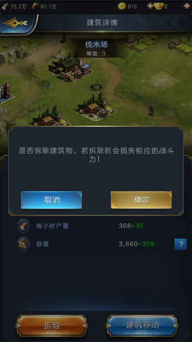 导读:在《乱世王者》手游中,玩家如果想提升自身实力,那么无论是建造还是升级各种建筑,都离不开木材这种资源,伐木场的建造,恰恰能缓解木材资源不足的情况。 【如何建造伐木场】 建造伐木场需要100粮草和一块空地,如果玩家想要建造伐木场,满足这两个条件即可。 首先点击空地,在随之弹出的建造页面点击第二个图标“伐木场”,之后点建造,就可以成功建造伐木场了。 伐木场的建造没有等级限制,但是伐木场的数量受到君主等级的影响,君主一级时可以建造四座伐木场。 【如何升级伐木场】 伐木场等级受到王城等级的限制,升级伐木场登记需要消耗一定量的粮草。 升级伐木场的好处:可以获得更高的木材产量和木材容量。 首先点击想要升级的伐木场,会弹出四个按钮,依次是“详情”、“升级”、“道具增产”和“金币增产”。点击“升级”按钮,系统会弹出“建筑升级”界面,界面中会提示王城等级限制、升级伐木场需要消耗的粮草数量和现有粮草数量,如果以上两个条件均满足升级要求便可以点击升级按钮。 【各级伐木场数据】 伐木场等级 战斗力加成 每小时产量 容量 1 1 120 1200 2 3 240 2400 3 5 366 3660 4 10 498 4980 5 19 636 6360 6 35 780 7800 7 58 930 9300 8 90 1086 10860 9 128 1248 12480 10 170 1416 14160 11 220 1590 15900 12 290 1770 17700 13 370 1956 19560 14 460 2148 21480 15 580 2346 23460 16 720 2550 25500 17 890 2760 27600 18 1110 2976 29760 19 1370 3198 31980 20 1700 3426 34260 21 2000 3660 36600 22 2400 3900 39000 23 2900 4146 41460 24 3400 4398 43980 25 4000 4656 46560 26 4700 4920 49200 27 5500 5190 51900 28 6300 5466 54660 29 7300 5748 57480 30 8000 6036 60360 提示:伐木场产量和容量除了受建筑等级影响以外,还受到科技以及君主技能的影响。 【如何拆除伐木场】 建议不要轻易拆除伐木场,因为拆除伐木场会损失相应的战斗力。 但是有时候确实需要拆除或者移动伐木场,应该进行如下操作: 点击想要拆除的伐木场,选择“详情”按钮,在详情界面会有“拆除”和“建筑移动”两个按钮。 拆除:把当前伐木场变为空地,拆除后可以建造其他建筑,拆除伐木场没有消耗。 建筑移动:把当前伐木场移动到其他空地,移动后此块地段变为空地。 总结:可以看出在《乱世王者》手游中,不同等级的伐木场带来的收益是完全不同的,等级越高收益越高,并且增加的战斗力也越高,所以多多提升伐木场的等级是重中之重。 了解更多相关信息,请前往http://sy.yzz.cn/ku/lswz/ [编辑:叶子猪小秘书]
