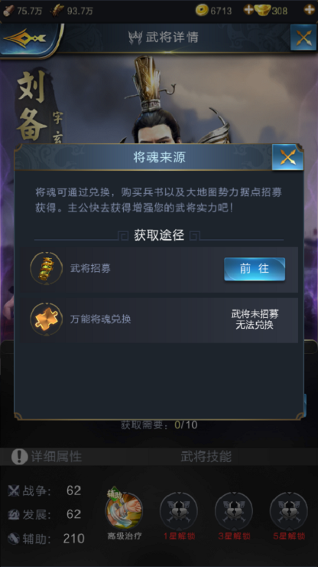 导读:在《乱世王者》中,辅助将是必不可少的,名将刘备就是这样一个角色。他有着高额的辅助属性,并且技能以辅助为主,我们要利用好他这一优势来帮助我们在这烽火乱世中争当王者。 【武将介绍】 刘备 武将简介 详细属性数值(初始) 性别 男性 战争 62 阵营 蜀国 发展 62 品级 紫色 辅助 210 武将生平:刘备,字玄德,东汉末年幽州涿郡涿县人,西汉中山靖王刘胜的后代,三国时期蜀汉开国皇帝、政治家,史家又称他为先主。 【武将获取方式】 1、武将招募:可以通过普通招募获取,有0.57%几率抽取到紫色武将;高级招募有4.43%几率抽取到紫色武将。 2、将魂兑换:将魂可通过兑换,购买并数以及势力据点招募获得,10个刘备将魂可以兑换得到紫色武将刘备。 【武将固有技能】 高级治疗:委任在医馆时,伤兵回复速度提高+3.7%(每100点辅助获得1.75%加成) 技能解析:从刘备的固有技能“治疗”来看,他是《乱世王者》中非常适合做“奶妈”的一名武将,我们在医馆委任武将时可以优先考虑他,并且后面解锁学习星级技能时也优先考虑辅助技能进行学习。 【武将技能学习推荐】 1星解锁推荐:医馆管理——委任在医馆时,伤兵上限提高(辅助技能) 3星解锁推荐:医术——出征战斗产生伤兵,回城后立即恢复(辅助技能) 5星解锁推荐:治疗消耗——委任在医馆时,治疗伤兵消耗降低提高(辅助技能) 推荐理由:由于刘备非常适合被委任在医馆,我们一星时技能学习应该尽量扩大这方面的优势,这个时候推荐大家学习医馆管理,提高医馆伤兵上限。 刘备升到三星时,正是游戏中战况激烈的时间段,我们难免卷入各种纷争之内,所以这个时候推荐学习医术,同样是辅助属性加成技能,最大化的利用刘备辅助属性高的特点。 刘备升到五星时,我们的高级士兵治疗费用也会到达一个比较高的水平,这个时候我们刷出治疗消耗这个技能是非常划算的,可以节省一大笔开支。 【总结】 总的来说,刘备是一个定位于我们常年委任在医馆的武将,所以我们的技能学习都与辅助系医馆类技能相关。当然这也是刘备的固有技能所决定的,当然技能各式各样,学习其他技能也未尝不可,这个就靠大家自己发掘了。 了解更多相关信息,请前往http://sy.yzz.cn/ku/lswz/ [编辑:叶子猪小秘书]