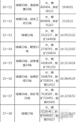 《乱世王者》手游王城中所有建筑升级都是需要时间的,那么分别都要多久呢?要多少木材和粮食?下面小编就为玩家带来《乱世王者》手游建筑升级时间一览,一起来看看吧。 建筑升级时间一览 王城升级时间: 城防值: 解锁建筑: [编辑:叶子猪小秘书]