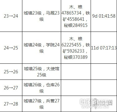 乱世王者手游30级王城要升级多久 全建筑建造时间一览