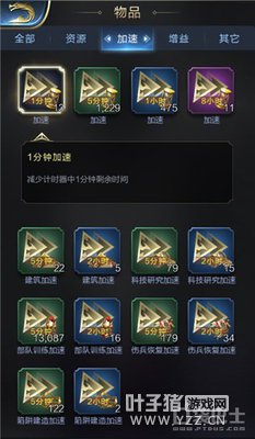 乱世王者都有哪些加速道具?游戏中不论是城池建设,还是兵种养成都是需要大量的时间来建造的,那么有没有捷径可以走呢?下面小编就带大家一起去看一下乱世王者中的加速道具! 加速道具,加速进程 加速道具的种类可以说有很多,但是总体上来说都是为了减少过程中需要的时间,从而实现快速实现目的的效果。游戏中许多进程都可以被加速道具覆盖到,从基础的建筑建造到科技研究,从士兵训练到伤兵医疗……加速道具在这里起到的作用是减少时间,不过并不能减少资源的消耗,所以也有着一定的局限性,只能说是在资源充足时让城池加速发展,或者是应对突发状况。 疯狂加速,发展起飞 加速道具的种类很多,从时间上来看加速道具被分为1分钟加速、5分钟加速、1小时加速和8小时加速,时间的范围很广,可以利用组合来减少浪费,尤其是建筑时间上可以结合自身的免费建造时间一起,来让加速道具不被浪费。对于中后期大量超过12小时的制造时间,8小时的加速道具可以说非常有效,提升效果明显。 分类加速,合理利用 加速道具还有着不同的类型,分为通用型的加速道具,可以加速所有的玩法,包括建筑建造、科技研究、士兵训练和医疗伤兵。还有其他的各类分项加速道具,只针对相对应的建造类别,虽然不能跨范围的使用,但是这一类道具的获取难度要相对较低,在相应领域使用也没有多大差别。 总结 [编辑:叶子猪小秘书]