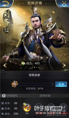 乱世王者刘备怎么使用?刘备作为游戏中橙色的辅助型武将属性是非常强大的,下面小编就带大家一起去看一下乱世王者蜀国枭雄刘备玩法技巧详解! 【武将介绍】 刘备 武将简介 详细属性数值(初始) 性别 男性 战争 62 阵营 蜀国 发展 62 品级 紫色 辅助 210 武将生平:刘备,字玄德,东汉末年幽州涿郡涿县人,西汉中山靖王刘胜的后代,三国时期蜀汉开国皇帝、政治家,史家又称他为先主。 【武将获取方式】 1、武将招募:可以通过普通招募获取,有0.57%几率抽取到紫色武将;高级招募有4.43%几率抽取到紫色武将。 2、将魂兑换:将魂可通过兑换,购买并数以及势力据点招募获得,10个刘备将魂可以兑换得到紫色武将刘备。 【武将固有技能】 高级治疗:委任在医馆时,伤兵回复速度提高+3.7%(每100点辅助获得1.75%加成) 技能解析:从刘备的固有技能“治疗”来看,他是《乱世王者》中非常适合做“奶妈”的一名武将,我们在医馆委任武将时可以优先考虑他,并且后面解锁学习星级技能时也优先考虑辅助技能进行学习。 【武将技能学习推荐】 1星解锁推荐:医馆管理——委任在医馆时,伤兵上限提高(辅助技能) 3星解锁推荐:医术——出征战斗产生伤兵,回城后立即恢复(辅助技能) 5星解锁推荐:治疗消耗——委任在医馆时,治疗伤兵消耗降低提高(辅助技能) 推荐理由:由于刘备非常适合被委任在医馆,我们一星时技能学习应该尽量扩大这方面的优势,这个时候推荐大家学习医馆管理,提高医馆伤兵上限。 刘备升到三星时,正是游戏中战况激烈的时间段,我们难免卷入各种纷争之内,所以这个时候推荐学习医术,同样是辅助属性加成技能,最大化的利用刘备辅助属性高的特点。 刘备升到五星时,我们的高级士兵治疗费用也会到达一个比较高的水平,这个时候我们刷出治疗消耗这个技能是非常划算的,可以节省一大笔开支。 [编辑:叶子猪小秘书]